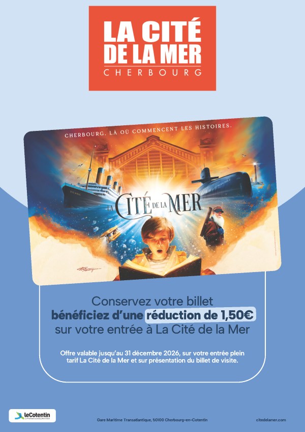 Visites commentées du 4 avril au 30 septembre 2026 : 1h pour le tour de la Rade de Cherbourg, 3 heures les jeudis d’été pour les côtes de la Hague.